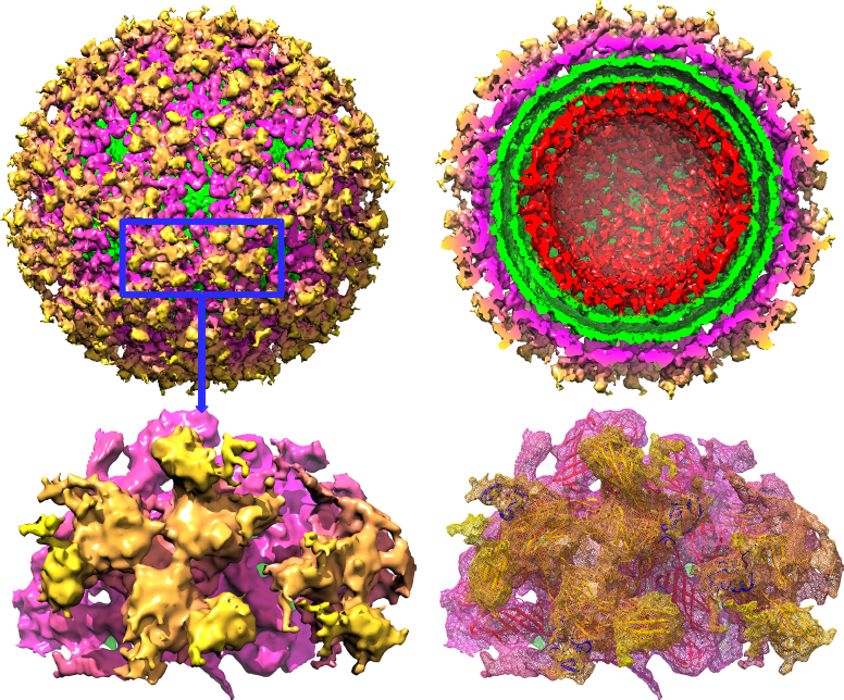 Figure : Structural organization of envelope protein E1 and E2 on WEEV surface